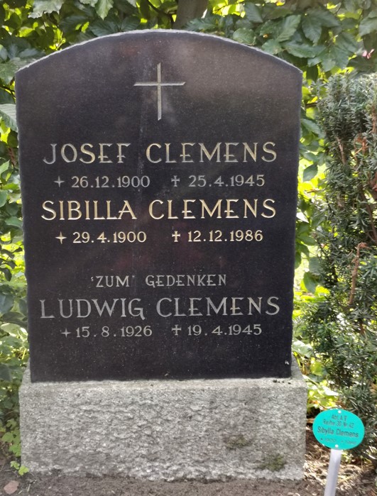 Block AV Reihe 30 Grab 43; Ehemann von Sibilla Clemens, geb. Stupp (1900-1986) |