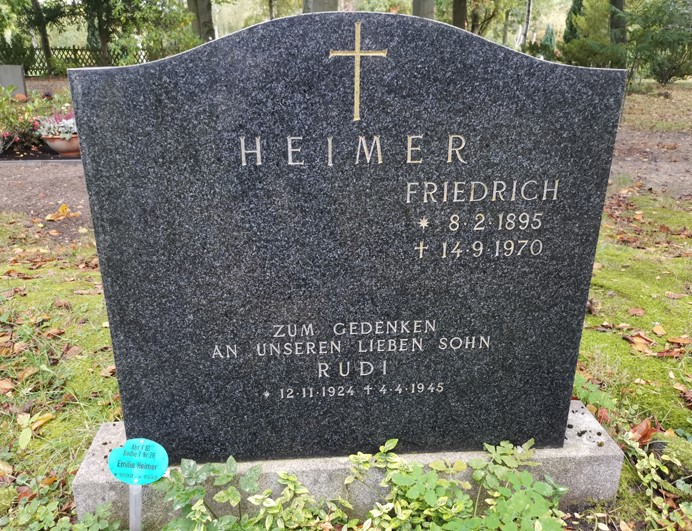 Zum Gedenken an unseren lieben Sohn Student; Vorname: Rudolf; Sohn von Friedrich Heimer (1895-1970) und Emilia Heimer (1899-1993) |