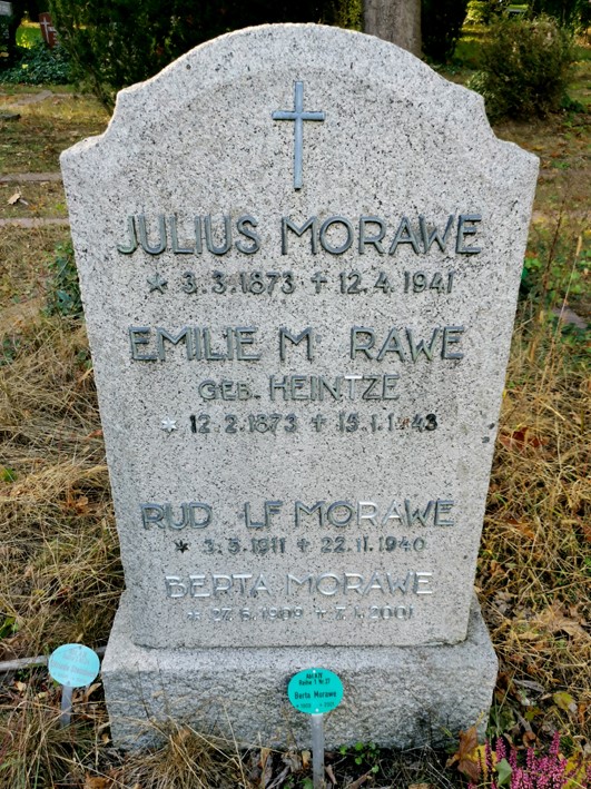 Verwaltungsangestellter; Sohn von Julius Morawe (1873-1941) und Emilie Morawe, geb. Heintze (1873-1943); Kriegsgräberstätte Berneuil: Block 6 Reihe 14 Grab 610 |