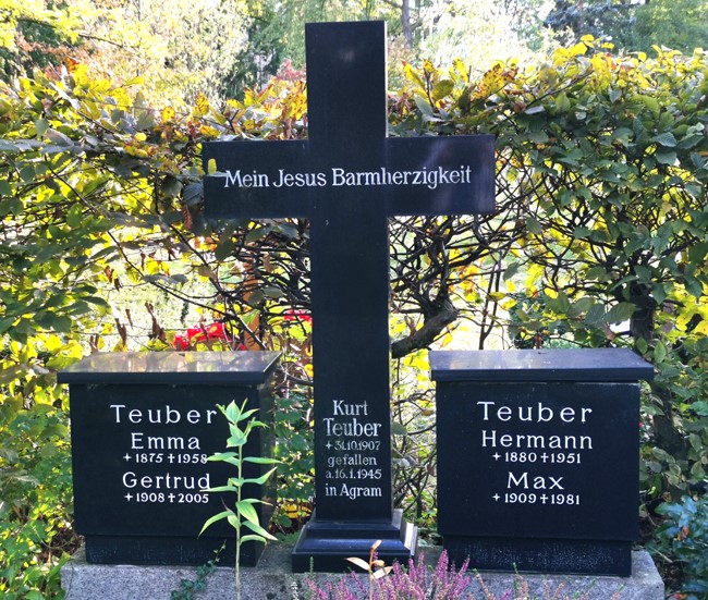 Kaufmann; Sohn von Hermann Teuber (1880-1951) und Emma Teuber (1875-1958); Kriegsgräberstätte Zagreb-Mirogoi: Parzelle 82 Feld 1 Grab 17 |