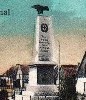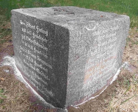 und einem EK-Zeichen, gekrönt von einem Adler. Nur der Quader mit den Namen ist erhalten und liegt auf dem Friedhof des Ortes.