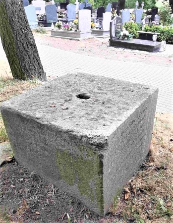 Nach 1945 wurde in der Neumark die deutsche Bevölkerung vertrieben und die meisten Denkmäler abgerissen, beschädigt oder umgewidmet. Hier wurde das Denkmal zerschlagen. Glücklicherweise überdauerte das wichtigste Teil mit den Namen die Zeit und liegt heute auf dem Friedhof. Der Quader ist etwas im Boden eingesunken und nur mit Hilfsmitteln und etwas graben wieder komplett lesbar zu machen. Eine Seite ist leider stärker verwittert, wodurch bei einigen Daten Unsicherheiten herrschen. Die Widmung kann man auf den vorliegenden alten Aufnahmen von Postkarten nicht erkennen.