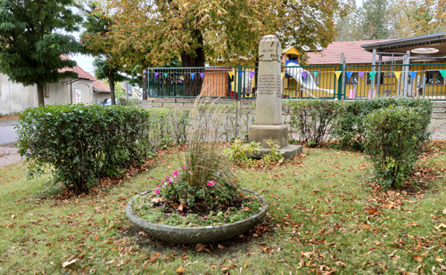Steindenkmal an der Durchgangsstraße am Weg zur Kirche.