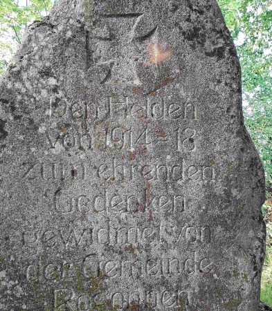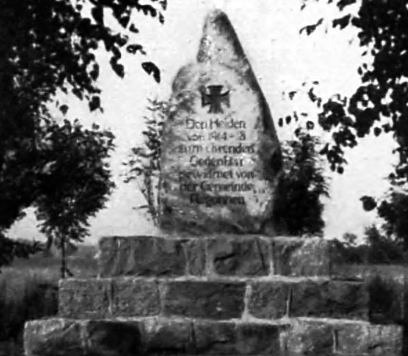 Denkmal für die Gefallenen des Ersten Weltkriegs südlich des Ortes: Dreistufiger Feldsteinsockel und aufgerichteter Findling mit Inschrift (ohne Namen).