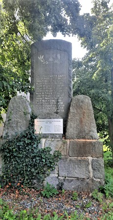 Foto © 2022 R. Krukenberg (Tafel, Kriegsgräber); 2023 Lothar Wendt (Denkmal)