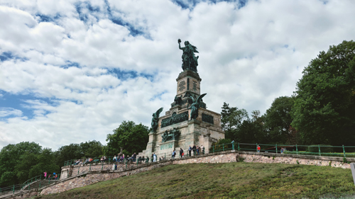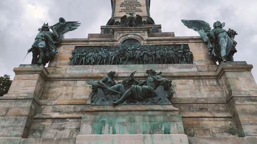 Oberhalb von Rüdesheim erhebt sich das Niederwalddenkmal, das laut Inschriften den Gefallenen im Feldzug gegen Frankreich gewidmet wurde.