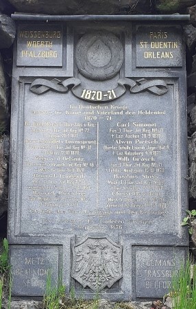 Am Aufgang zum Schloss Bertholdsburg befindet sich das Kriegerdenkmal für die Teilnehmer und Gefallenen des Deutsch-Französischen Krieges. Die Hauptschlachtfelder werden an den Ecken der sich in der Mitte des Hügels befindlichen Tafel explizit genannt. Über einem Aufgang von sechs Stufen ist eine Art Grabhügel aus Felsbrocken errichtet, der von einem Löwen bewacht wird. Auf der Tafel werden neben den Schlachtfelder die Namen und andere Daten der Kriegsopfer sowie das Datum der Errichtung des Denkmals genannt. Unten mittig ist der preußische Adler als Wappen dargestellt.