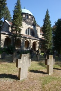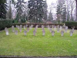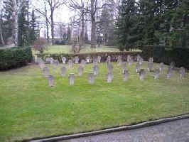 Auf einem Ehrenfriedhof an der Friedhofskapelle sind Soldaten des Ersten Weltkrieges bestattet. Auf drei Gräberfeldern ruhen mindestens 1015 Opfer des Zweiten Weltkrieges, davon 272 Unbekannte.
