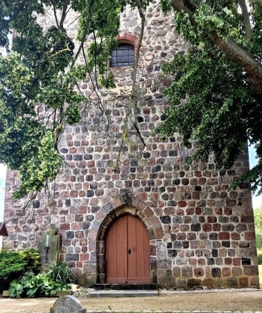 Steintafel für die Gefallenen des Ersten Weltkriegs an der Außenmauer der Kirche.