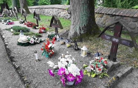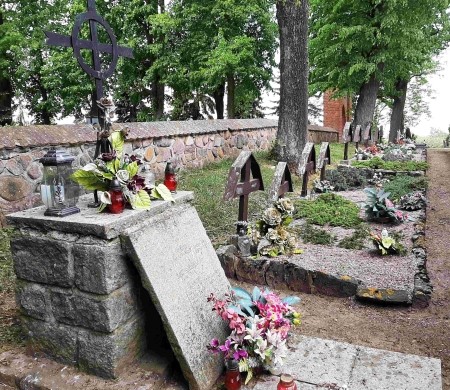 Kriegsgräberstätte des Ersten Weltkriegs für im August 1914 bei Seeburg gefallene und später im Lazarett verstorbene deutsche und russische Soldaten auf dem örtlichen Friedhof, bestehend aus einer Reihe von Holzkreuzen an der Friedhofsmauer. In der Mitte befindet sich ein Quader mit krönendem Metallkreuz.