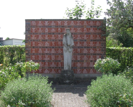 Rechteckige Ziegelsteinmauer mit Namenssteinen der Gefallenen und Vermissten des 2. Weltkrieges. Standort ist der nördliche Bereich des Texasweges.