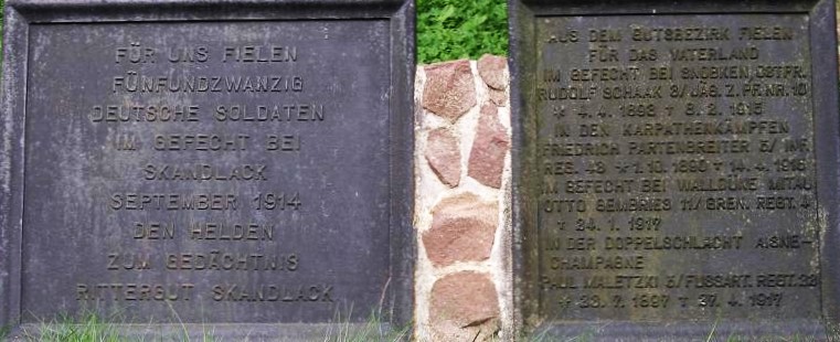 Für die auf der einen Gedenktafel erwähnten 25 vor Ort Gefallenen gibt es noch eine kleine Kriegsgräberstätte, die vom Verfasser nicht besucht werden konnte. Die Namen werden hier mit aufgelistet: Bilder kann man auf folgender Seite sehen: rowery.olsztyn.pl/wiki/miejsca/1914/warminsko-mazurskie/ketrzyn. Von dort wurden auch die Namen von den Steinen abgeschrieben.