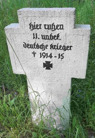 Kriegsgräber für Gefallene des Ersten Weltkriegs auf den Resten des alten evangelischen Friedhofs westlich des Ortes: Privates Grab für einen Hauptmann, Grabsteine für 11 unbekannte deutsche Soldaten und einen unbekannten russischen Offizier.