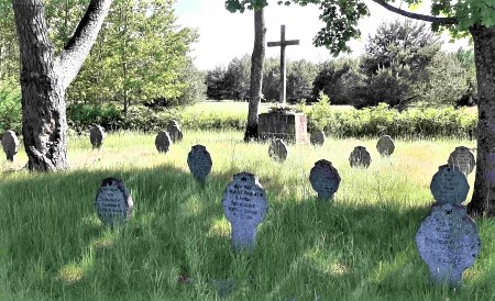 Kriegsgräberstätte für Gefallene des Ersten Weltkriegs westlich des Ortes an der Hauptstraße: Feldsteinquader mit großem Holzkreuz und 16 rundliche Grabsteine für 22 deutsche Soldaten (davon zehn unbekannte) und 43 unbekannte russische Soldaten.