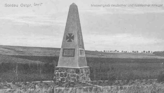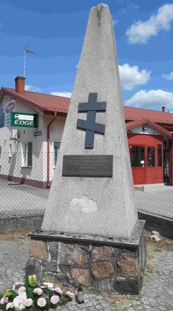 Nach 1945 wurde in Ostpreußen die deutsche Bevölkerung vertrieben und die meisten Denkmäler abgerissen, beschädigt oder umgewidmet. In der Stadt ist kein Gedenken an gefallene Einwohner erhalten. Dieses Denkmal steht noch in seiner äußeren Form. Es stand früher außerhalb des Ortes und auf alten Fotos wird es als Massengrab für deutsche und russische Soldaten bezeichnet. Namen waren dort nie angebracht. Die Widmungstafel für zwei gefallene Flieger, die sich angeblich 1915 gegenseitig abgeschossen haben, wurde erst nach der politischen Wende in Polen dort angebracht. Das Denkmal steht heute versteckt in einem Gewerbegebiet.