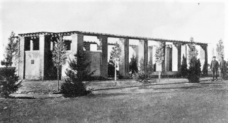 Das Grabdenkmal sollte die Scheune andeuten, in dem deutschen Soldaten verbrannten, nachdem Russen diese anzündeten. Nach Streit mit Grundstückseigentümern wurden die Soldaten 1935 exhumiert und das Denkmal abgerissen. Die Gebeine wurden auf die Kriegsgräberstätte an der Grunwaldzka-Straße umgebettet. Die Namenstafeln wurden dort angebracht. Von allem fehlt auf dem heute verwahrlosten Friedhof jede Spur. Auf historischen Fotos sind immer nur zwei der vier Namenstafeln sichtbar. Informationen zu den anderen Namen werden gesucht.