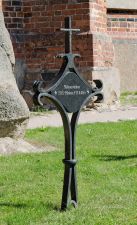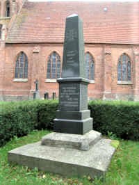 Obelisk neben der Ortskirche. Sühnezeichen für zwei am 25.08.1944 ermordete US-Piloten.