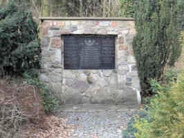 In gemauerten Natursteinen eingelassene gravierte Tafel, in einem kleinen Park gelegen.