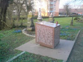 Auf dem alten Friedhof bei der Kirche befindet sich eine Denkmalanlage / Massengrab für 101 Opfer am Ende des Zweiten Weltkrieges.