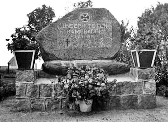 Nach 1945 wurde in Ostpreußen die deutsche Bevölkerung vertrieben und die meisten Denkmäler abgerissen, beschädigt oder umgewidmet. Hier wurde der Sockel komplett abgerissen. Der Findling lag noch bis mindestens 2017 am alten Platz, wie man auf folgender Seite sehen kann: rowery.olsztyn.pl/wiki/miejsca/1914/warminsko-mazurskie/targowo. Im Jahre 2023 war die Stelle nicht mehr zugänglich. Das Gelände war stark eingezäunt und völlig zugewachsen. Mehrere Einwohner sagten dem Verfasser, dass der Stein weggeschafft und wahrscheinlich privat verbaut wurde.
