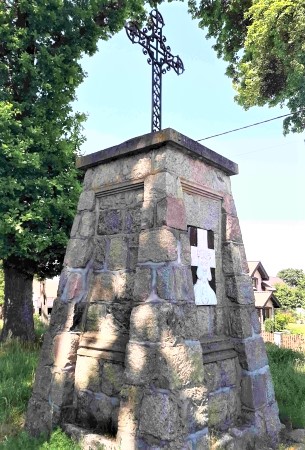 Denkmal für die Gefallenen des Ersten Weltkriegs: Aus Natursteinen gemauerte stumpfe Pyramide mit eingelassener Widmungs- und Namenstafel, sowie einem krönenden Adler. Am Denkmal wurden nach 1945 alle deutschen Inschriften und der Adler zerstört und christliche Kreuze angebracht. 2018 wurde eine polnische Erklärungstafel zum Denkmal angebracht.