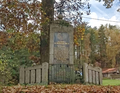 Kriegerdenkmal für beide Weltkriege auf einer kleinen Anhöhe am Abzweig nach Altenkünsberg.