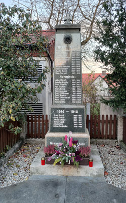 Steindenkmal mit krönendem Tatzenkreuz für die Gefallenen und Vermissten beider Weltkriege.