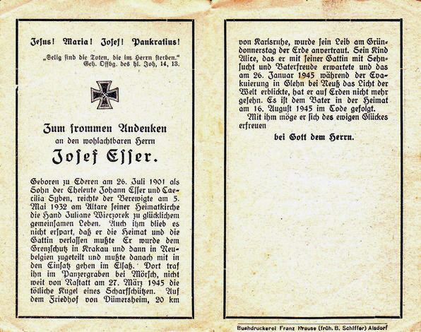 Hilfszollassistent | ESSER | Josef | 26.07.1901 Ederen Kr. Jülich |