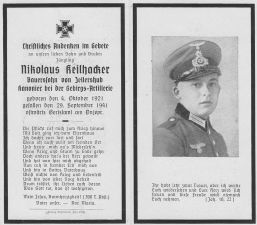 Kanonier | KEILHACKER | Nikolaus | 04.10.1921 Zellershub | 29.09.1941 ostwärts von Berislav am Dnepr, Russland |