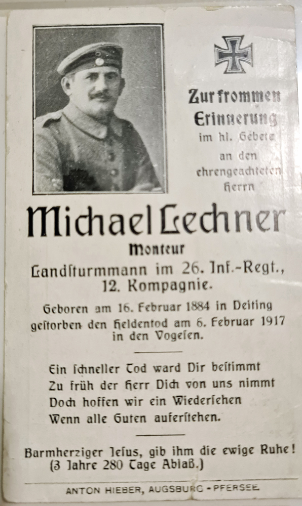 Landsturmmann | LECHNER | Michael | 16.02.1884 Deiting Taiting (Friedberg) |