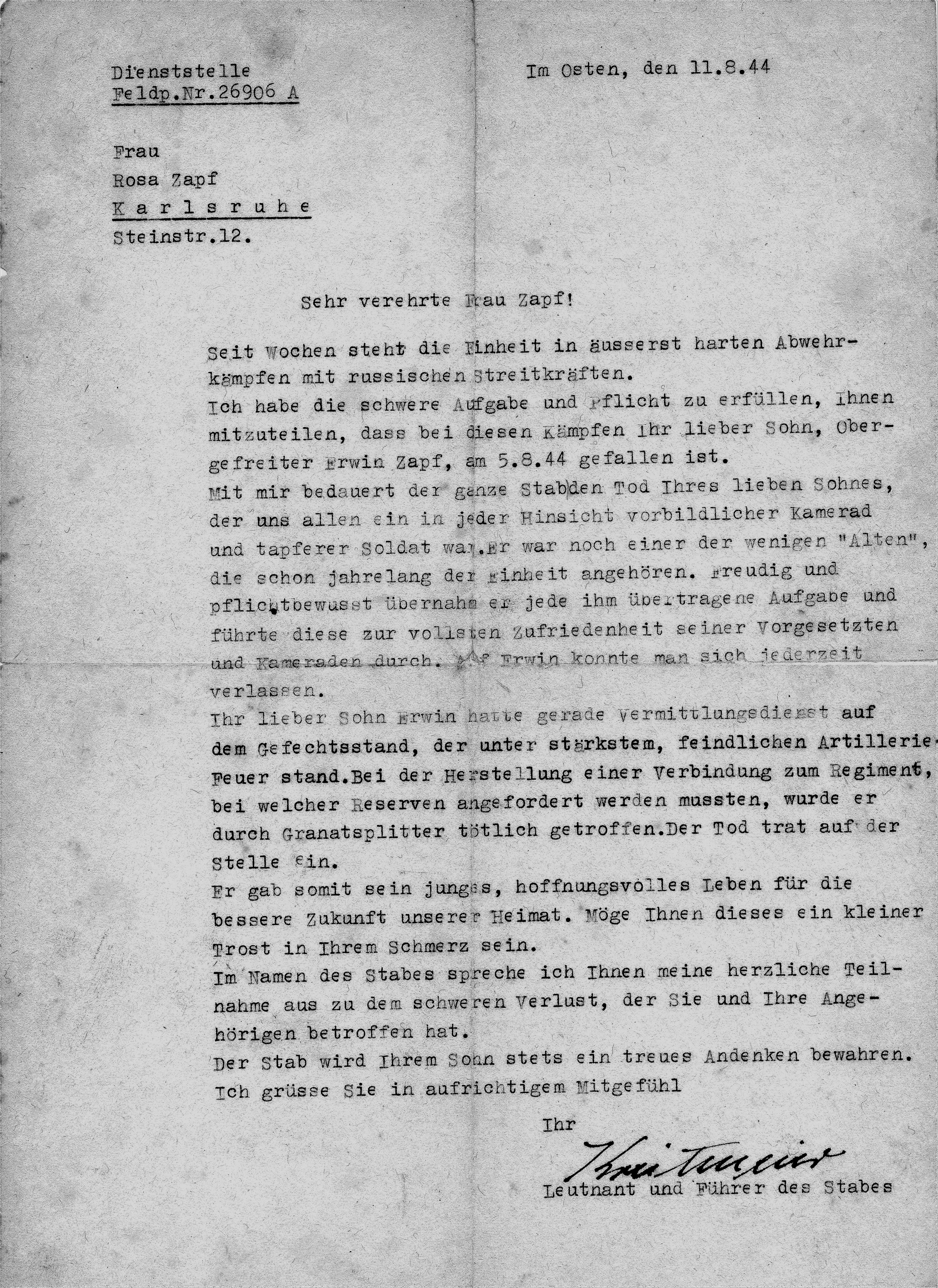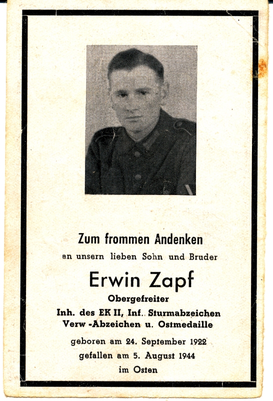 Obergefreiter | ZAPF | Erwin Julius | 24.09.1922 Karlsruhe |