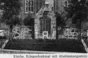 Nach 1945 wurde in Ostpreußen die deutsche Bevölkerung vertrieben und die meisten Denkmäler abgerissen, beschädigt oder umgewidmet. Hier wurden alle Insignien der ursprünglichen Bedeutung entfernt und ein christliches Denkmal daraus gemacht. Nur im unteren Bereich in einem Stein ist die Gravur erhalten: „Erbaut 1925 von J. Gromczeck“. Leider sind keine lesbaren Fotos oder Aufzeichnungen der Namen auffindbar und werden gesucht. Vor dem Denkmal stand noch ein kleiner Gedenkstein mit Tafel und Ehrenkranz für die Abstimmung 1921 zum Verbleib bei Deutschland.