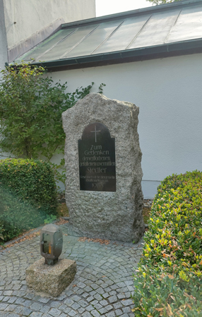 Gedenkstein ohne Namen vor der Auferstehungskirche.