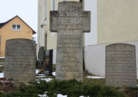 Stele auf dem Friedhof an der ev. Friedenskirche neben dem Denkmal für den Zweiten Weltkrieg für die Gefallenen des Ersten Weltkriegs.
