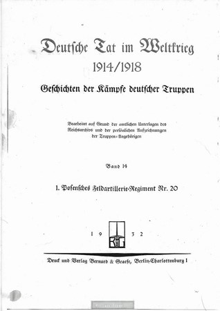Deutsche Tat im Weltkrieg 1914-1918: Das 1. Posensche Feldartillerie-Regiment Nr. 20, Druck und Verlag Bernard & Graefe, Berlin.