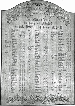 Den Heldentod starben für König und Vaterland vom Kgl. Preuß. 1. Pos. Feldart. R. 20
