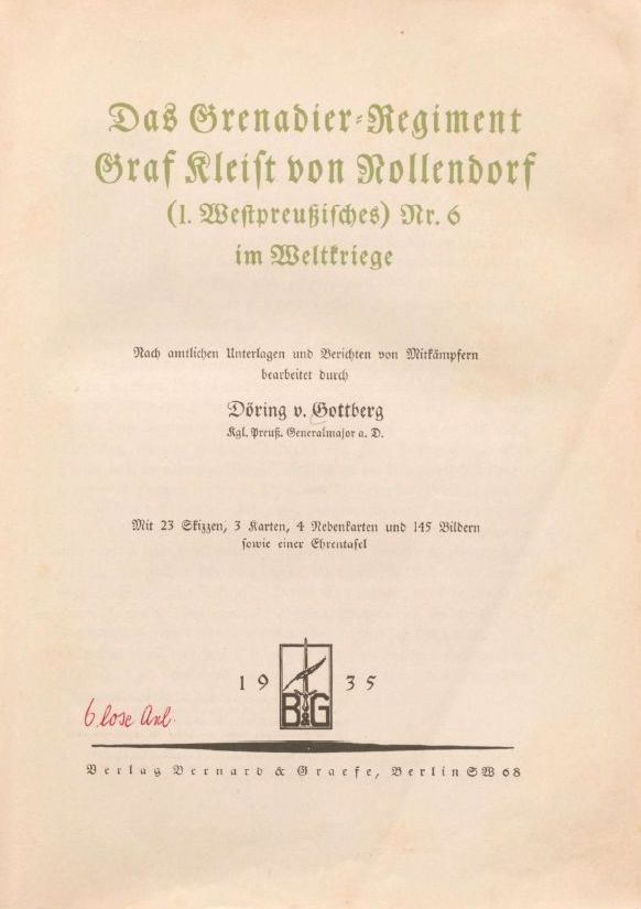 Das Grenadier-Regiment Graf Kleist von Nollendorf (1. Westpreußisches) Nr. 6 im Weltkriege.