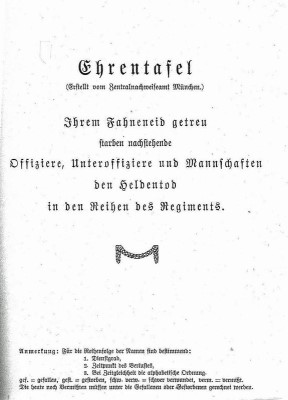 Ihrem Fahneneid getreu starben nachstehende Offiziere, Unteroffiziere und Mannschaften den Heldentod in den Reihen des Regiments.