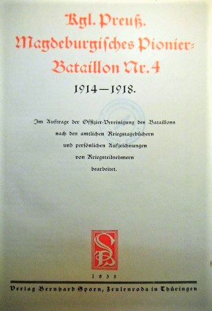 Kgl. Preuß. Magdeburgisches Pionier Bataillon Nr. 4 1914-1918 im Auftrage der Offizier-Vereinigung des Bataillons nach den amtlichen Kriegstagebüchern