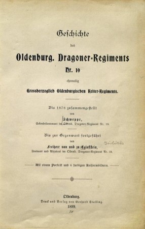 Geschichte des Oldenburg. Dragoner-Regiments Nr. 19, ehemalig Grossherzoglich Oldenburgischen Reiter-Regiments.