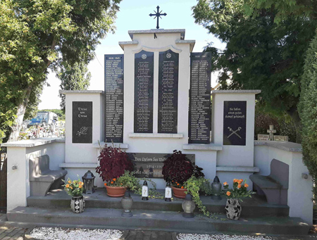 Denkmals-Anlage für die Gefallenen des 1. und 2. Weltkriegs vor dem örtlichen Friedhof.