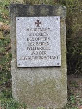 Gedenkstein für KZ-Häftlinge an der Kirche.
