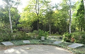 Die sechs Steinplatten befinden sich auf dem historischen Friedhof im Stephan-Jantzen-Park in Warnemünde.