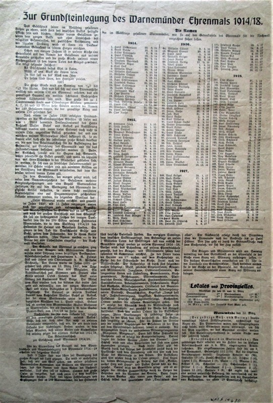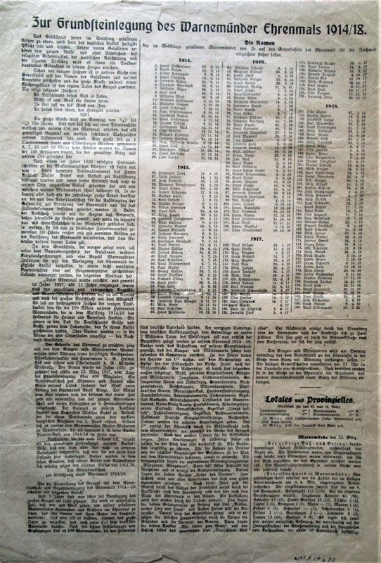 Quelle 7: Zur Grundsteinlegung des Warnemünder Ehrenmals 1914-18 in Warnemünder Zeitung 16.03.1927.