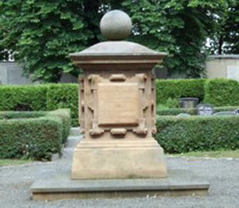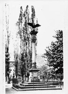 Sockel des ursprünglichen Denkmals, 1937 auf dem städtischen Friedhof aufgestellt. Ein Teil der Siegessäule befindet sich noch in der Widenkirche.
