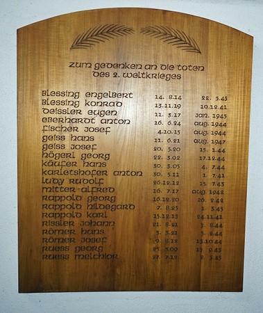 Wandtafel aus Holz in der Kirche St. Nikolaus in Weidach.