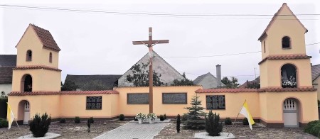 Denkmalanlage für die Gefallenen, Ermordeten und Vermissten beider Weltkriege. Errichtet für die Gefallenen des Ersten Weltkriegs mit einer versetzten Wand mit zwei Namenstafeln und zwei flankierenden großen dreistufigen Türmen und einem zentralen Holzkreuz.