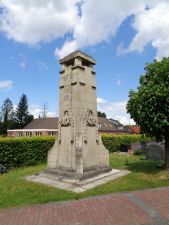 Großes Denkmal auf dem Friedhof. Namen sind nicht mehr ablesbar aufgrund Verwitterung.