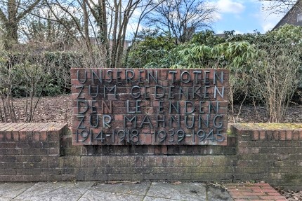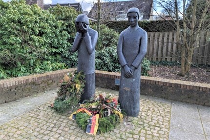 1961 im Stadtpark Thalenweide aufgestelltes Mahnmal von Alice Peters-Ohsam. Es besteht aus zwei überlebensgroßen Frauenfiguren aus Klinker.