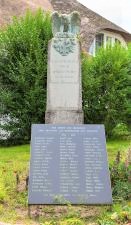 Davor eine Tafel mit den Namen der Gefallenen des Zweiten Weltkriegs.
